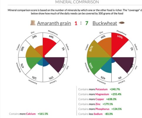 Le immagini di comparazione tra Saraceno e Amaranto evidenziano una maggiore ricchezza di nutrienti del primo. Se a questo aggiungiamo che è anche più facile trovarlo di provenienza italiana, o comunque europea, non credo ci siano dubbi su quale scegliere.