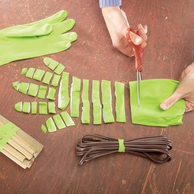 Ritagliate a strisce i vostri guanti in gomma e ricavate tanti elastici multiuso. Sempre utili in casa per legare cavi , chiudere le buste della pasta e molto altro ancora…