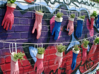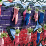 Appendete in esterno a delle corde per asciugare i vostri panni, i guanti di gomma e utilizzateli come vasi per le vostre piantine da giardino. Vi basterà inserire del terriccio, i semini e annaffiare con dell’acqua. Mettete tanti guanti di diverso colore tutti in fila e vedrete che vivacità nel vostro giardino o sul vostro balcone!