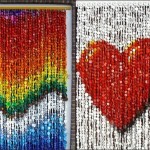 La procedura è molto simile alla creazione del lampadario con i tappi di plastica (vedi sopra), ma anziché unire i tappi di plastica ad una forma circolare di cartone, sistemate le file della tenda verticalmente su una lunga cornice di legno, in modo orizzontale, così da attaccarla al muro con qualche chiodo.