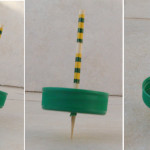 Dopo aver preso questi due occorrenti, forate il tappo di plastica al centro, con l’aiuto di un coltello e infilateci dentro un terzo dello stuzziadente. . Per creare una piccola trottola, bisogna che il tappo sia rivolto verso il basso con la parte chiusa, mentre la parte aperta deve rivolgersi verso l’alto.