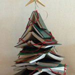 Prendete un certo numero di libri, che però abbiano la copertina rigida e foderatela con della carta adesiva di colore verde pino. Aprite tutti i book a metà rovesciandoli sul piano nel quale avete deciso di dare origine all’albero e sovrapponeteli tutti formando quindi una piramide. Se sono letture che avete già fatto, potete incollarli tra loro per evitarne la caduta. Aggiungete una bella ghirlanda di perle rosse e il gioco è fatto.