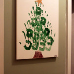 Riempite una tela bianca dando vita ad una albero di natale a muro. Coinvolgete i vostri bimbi perchè vi dovranno dare una “mano”. Ebbene sì, perché sarà proprio la mano ad essere la protagonista di questa opera, quindi immergetela in una tempera di colore verde per realizzare il triangolo dell’albero e poi realizzate con un pennello e tempera marrone il tronco e ancora, una stellina in cima di colore giallo.