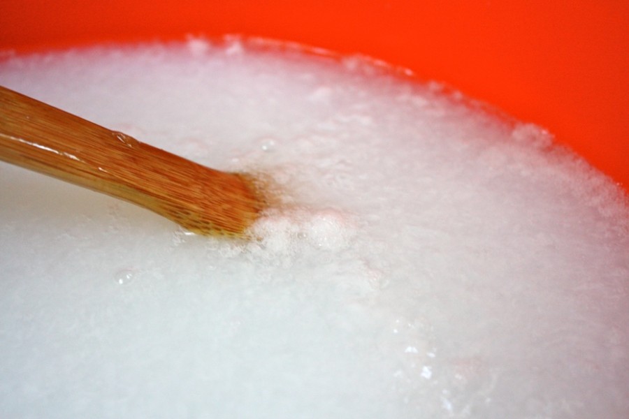 • Mettete in un contenitore l’acqua e aggiungete il bicarbonato.