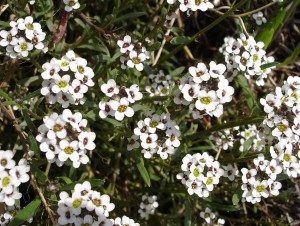 L’alyssum saxatile è il suo nome scientifico. Trattasi di una sempreverde tappezzante di originae europea dalle piccole foglie allungate riunite in rosette da cui in primavera si alzano dei fusti sottili da ci scoppiano mazzetti di fiorellini gialli amatissimi dalle farfalle.