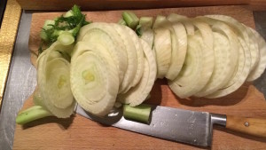 1) Lavare e tagliare i finocchi a fette non troppo sottili