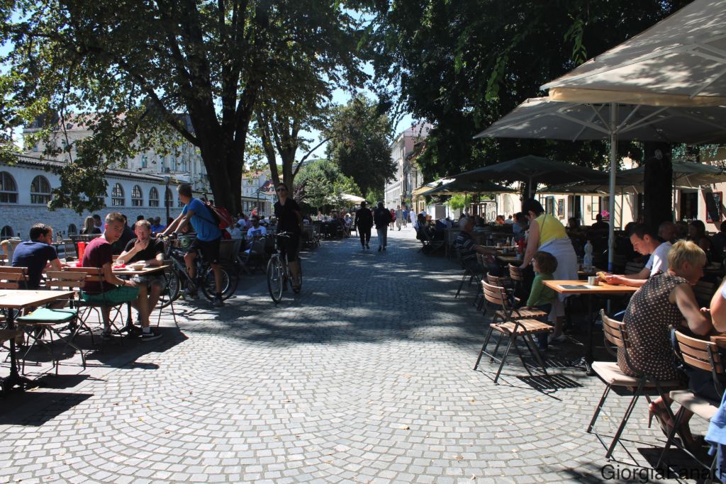 Scendendo con la funicolare dal Castello si arriva nella piazza del mercato di Lubiana (Vodnikov trg) dove si trova la “casa del latte”, cioè il distributore automatico di latte. Il latte che viene distribuito è della fattoria Mis di Zavrh, sotto la Smarna Gora, a circa 15 km dal centro di Lubiana, e afferma di pascolare le mucche all’aperto. Latte vicino e sicuramente economico: il prezzo di una bottiglia è di 1 euro. Se si arriva sprovvisti di bottiglia, è possibile acquistarne una in plastica al distributore vicino, ma ovviamente si può mettere il latte in qualunque altro recipiente: il distributore intende stimolare proprio la riduzione degli imballaggi permettendo il riuso della stessa bottiglia. Proseguendo verso il fiume si giunge al ponte sorvegliato da quattro draghi alati: si tratta di uno dei primi ponti in cemento armato in Europa. Originariamente chiamato Ponte del Giubileo, venne inaugurato nel 1901, per onorare i 40 anni di regno dell’imperatore Francesco Giuseppe I (1848-1888). Soltanto nel 1919 ebbe il nome attuale, Zmajiski Most, Ponte dei Draghi appunto, il cui aspetto ha fatto sì che il soprannome del ponte divenisse “matrigna” o “suocera”. Passeggiare sulle rive del Lubjaniska è davvero un piacere: sono tanti i ristoranti, i bar e i pub che hanno a disposizione tavolini all’aperto, e non mancano le bancarelle di artigianato.