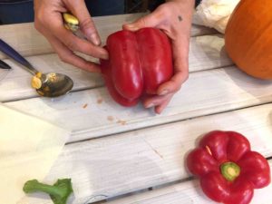 Per il peperone il procedimento è lo stesso ma cambia la delicatezza da mettere nel momento dell’intaglio. Fra le altre cose qui è necessario utilizzare utensili ben affilati e fare attenzione a non schiacciare la verdura al momento del taglio