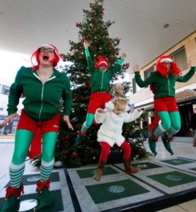 Che ci fanno questi elfi di fronte all’albero di Natale di questo centro commerciale? La risposta potrebbe essere scontata ma la verità è che non si tratta della solita animazione per i bambini come sarebbe logico pensare.