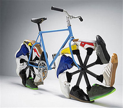 Tra le biciclette più pazze del mondo appare il modello da noi rinominato “millepiedi”. I raggi delle ruote sono ampliati da scarpe e quindi a trasportare il passeggero non saranno le ruote, ma bensì i “piedi” della bici. Un’ idea stravagante e semplicemente geniale!