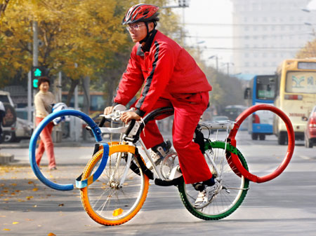Se il vostro sogno è sempre stato quello di partecipare a grandi eventi sportivi, tanto da sentire le olimpiadi nelle vene, ecco che tra le biciclette più pazze del mondo appare un modello perfetto per questo desiderio. La bike è dotata di due ruote che stimolano il movimento di cui una gialla e l’altra verde e poi appaiono altri tre cerchi (nero,blu e rosso): insieme compongono quindi gli anelli delle olimpiadi!