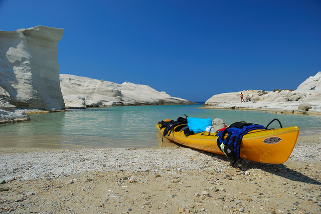 Siamo nel cuore del Mar Egeo, sull’isola di Milo dove si trova questa bellissima e particolarissima piscina naturale aperta su di un lato. È costeggiata da sabbia bianca e scogli che sembrano riprodurre un paesaggio lunare. Non siamo in paradiso ma in Grecia a Sarakiniko.