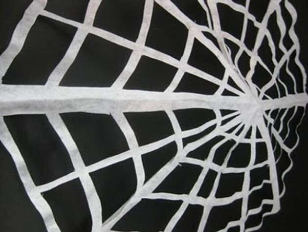 Otterrete così una finta ragnatela di Halloween con la carta da rendere ancora più divertente con l’aggiunta di un piccolo ragno disegnato.