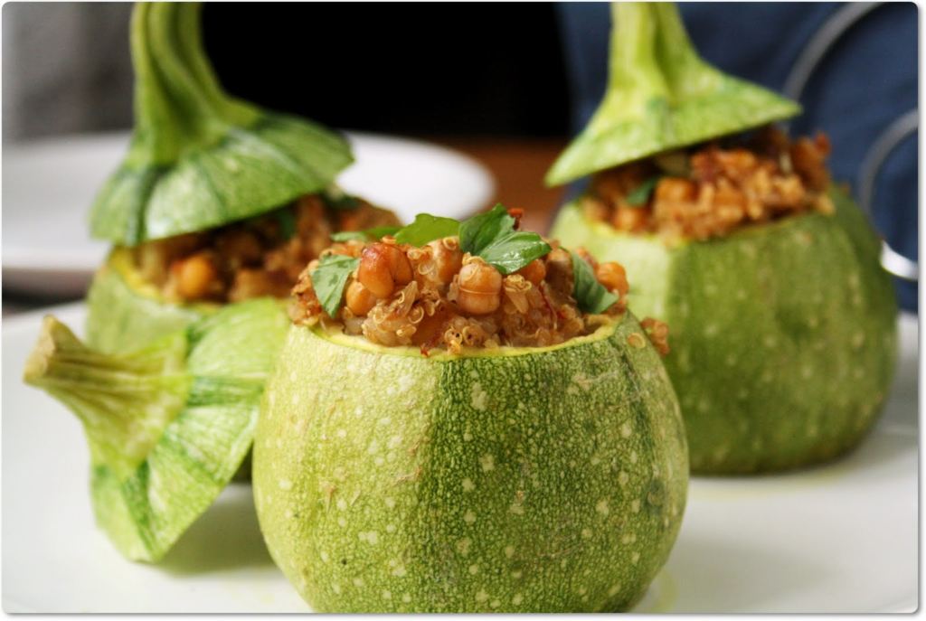 RICETTE DI CUCINA VEGETARIANA, ZUCCHINE TONDE RIPIENE DI CECI E MANDORLE TOSTATE