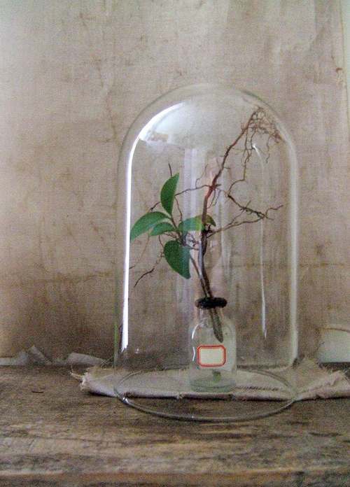 In questo riciclo creativo vi chiediamo di utilizzare una campana di vetro, sennò va benissimo anche un grosso barattolo di sottaceti, quindi vi servirà una piccola boccetta come quella per gli oli essenziali e una piantina. Inserite la piccola pianta nella boccetta pulita con poca acqua e richiudetela nella campana di vetro.