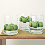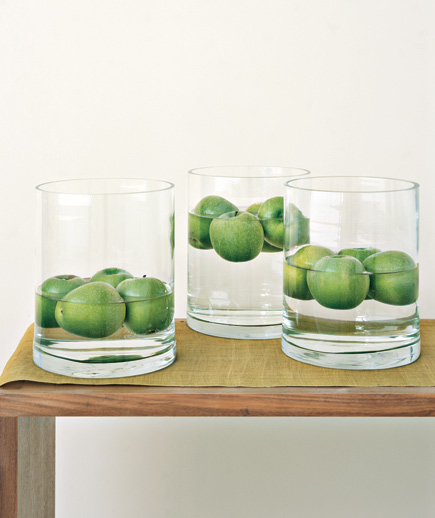 Prendete dei grandi vasi trasparenti, possibilmente che salgano in verticale, riempiteli di acqua e di 3 o 4 mele verdi. L’effetto green sarà inaspettato e in più la vostra frutta resterà al fresco.