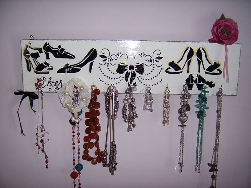 Avete mai pensato di utilizzare un appendiabiti da parete per sistemare i vostri gioielli? Allora dotatevi di pennello e colori acrilici perché andrete a disegnare delle scarpe o altre raffigurazioni del genere femminile.