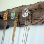 Se avete trovato un pezzo di legno rettangolare in giardino, esso è perfetto per essere riutilizzato ad appendere collane e bracciali: in che modo? Leggete la descrizione della foto e lo scoprirete!