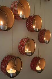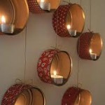 Eliminate del tutto la parte apribile della scatoletta di alluminio e lavatela bene all’interno perché andremo a creare dei portacandele da parete. Decorate a vostro piacere l’accessorio da riciclo come più preferite, anche colorando con colori acrilici o incollando una carta decorata , quindi create un piccolo foto nel retro sulla parte alta inserendo un filo; incollate una piccola candela all’interno, mettendo la scatoletta in modo verticale e appendetela alla parete. Create almeno cinque portacandele e sistemateli tutti vicino, uno più alto e uno più basso e accendete tutti gli stoppini: vedrete che effetto soffuso donerà alla vostra casa.