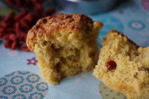 Le bacche di goji, ormai famosissime, reinterpretate da Dana Frigerio in squisiti muffin dal colore estivo