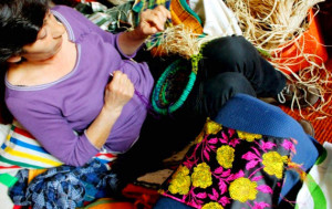 La tradizione sarda dell’intreccio incontra la stoffa e nascono dei cesti coloratissimi