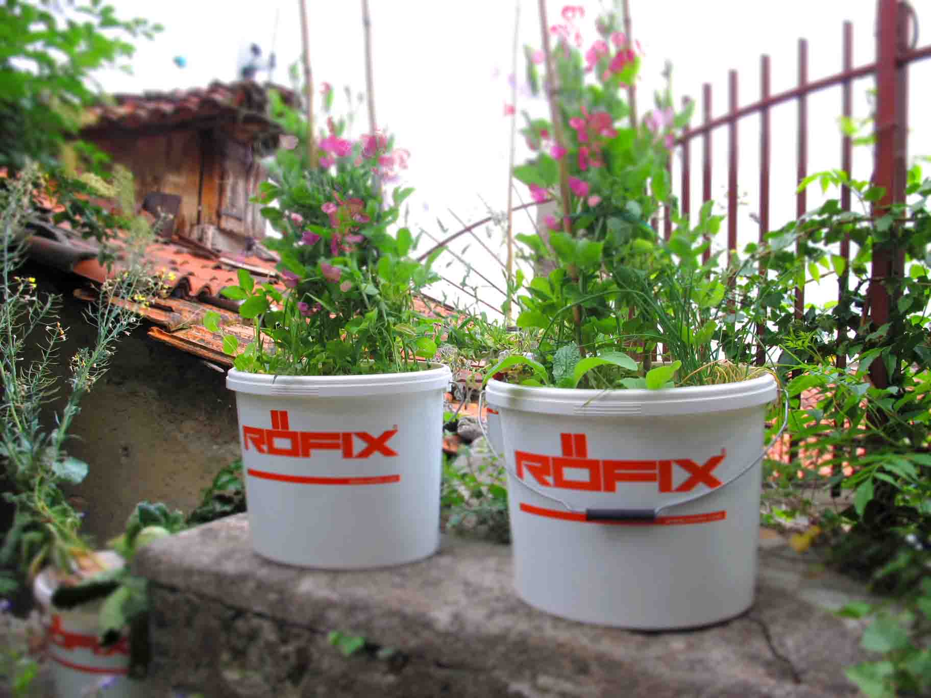 Come riutilizzare e riciclare i secchi dell’intonaco per poi coltivarci dei fiori e delle erbe aromatiche